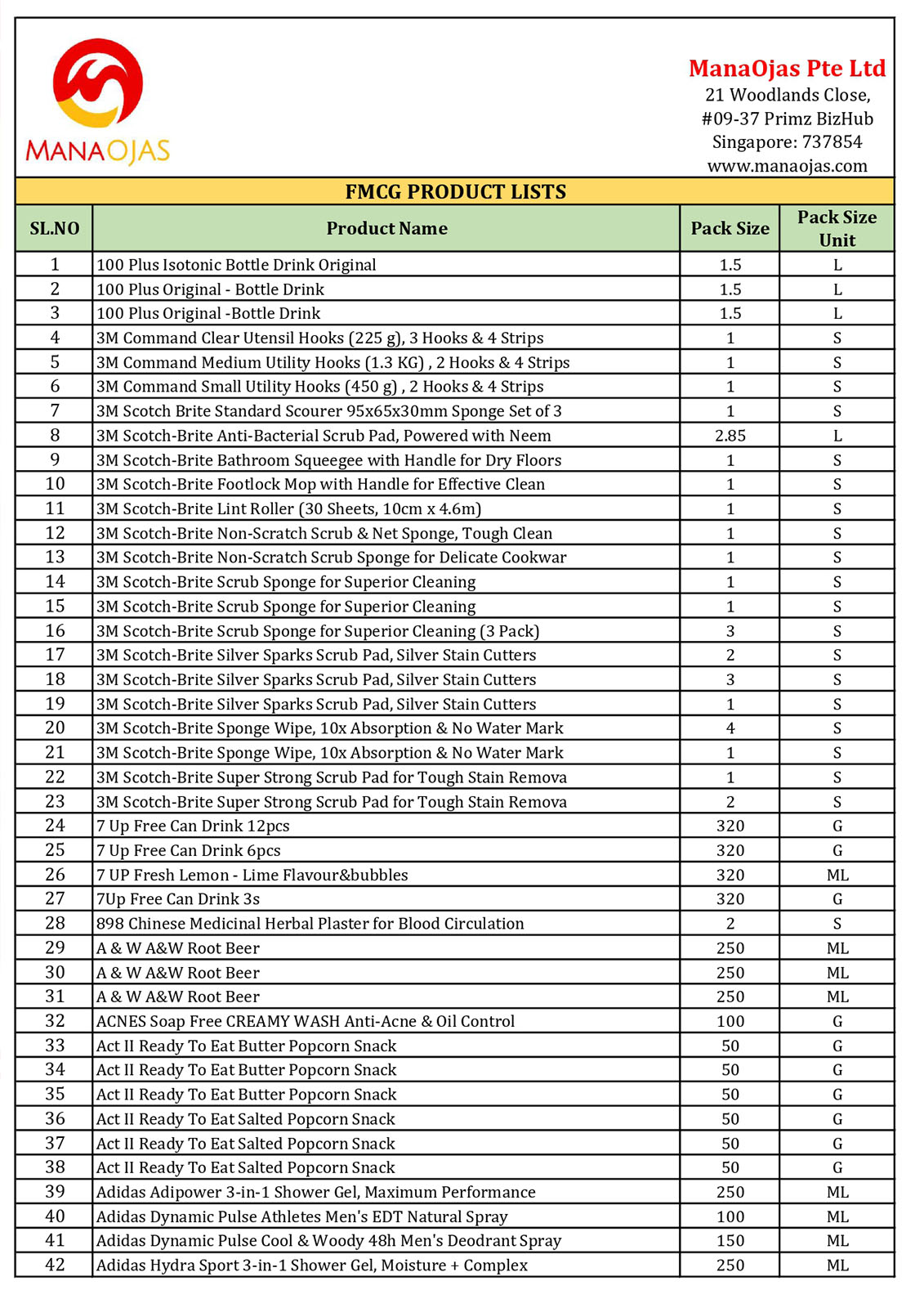 ManaOjas FMCG Lists